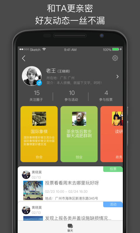 2.还能建立感兴趣的公开属性的圈子,让爱好相同的人参加。
