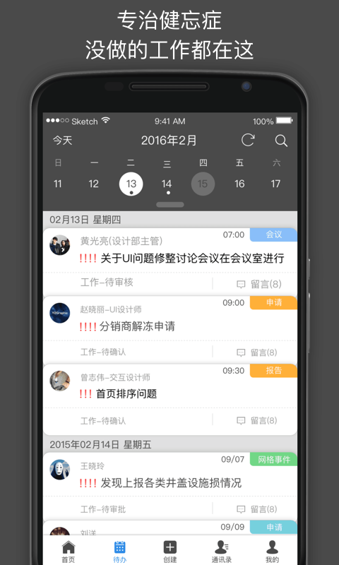 3.个人版凸显的是社交性,管理用户的生活、工作,实现及时提醒、个性化定制等功能。