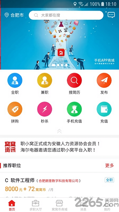 职小窝安卓版是一款提供找工作和购物服务的软件平台,专注于帮助用户找到合适满意的工作,购买到称心如意的商品;平台与众多公司人力资源部合作,将各公司空缺的职位信息和要求全部公布,职位信息绝对真实可靠,用户可以放心的投递简历,等待公司给予答复,不管用户想做兼职、假期工还是全职工作,都能找到合适满意的工作岗位;平台推出商城板块,商城汇聚各类优质商品,不管是电脑电视,还是男装女装,统统满足用户的需求,商城还推出拼团、秒杀等优惠活动,让用户节省一定金额的开销。