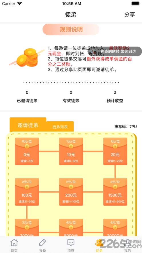 4.佣金数额一目了然,一键查询收入明细,包括个人收入和徒弟成交返佣!