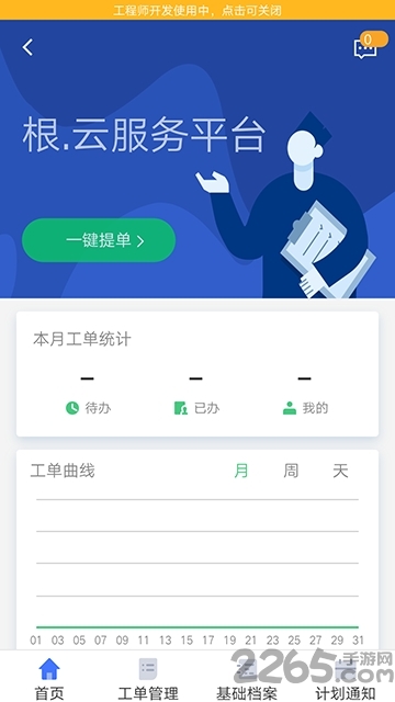 根云在线是一个实用的云服务办公软件,帮助你解决很多的办公难题,提高办公效率,精准统计各种数据,包括本月工单统计数据,制成工单曲线报表,查看报警信息,分析趋势图表等等.