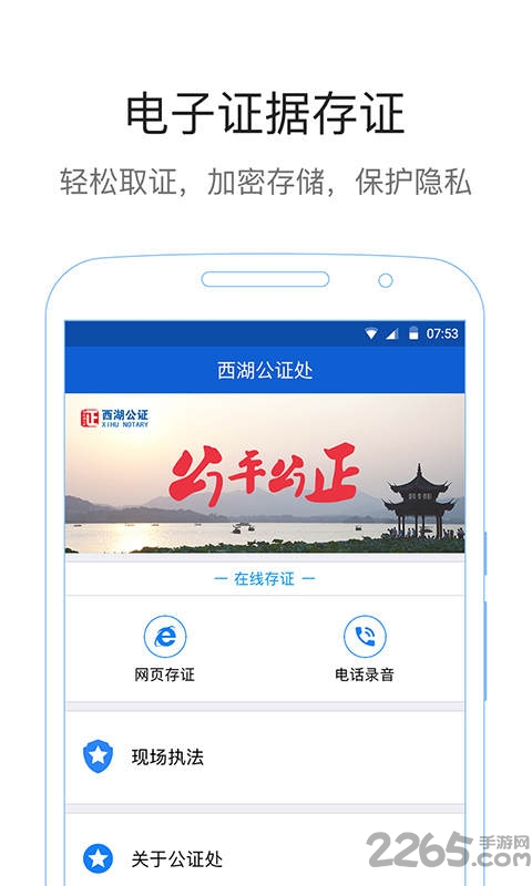 西湖公证通用版app一款公证软件,可以通过录像,拍照录音等方式进行公证,提高办事的效率,软件操作便捷不受地域的限制,可以随时随地进行使用,需要的用户欢迎来点击下载。