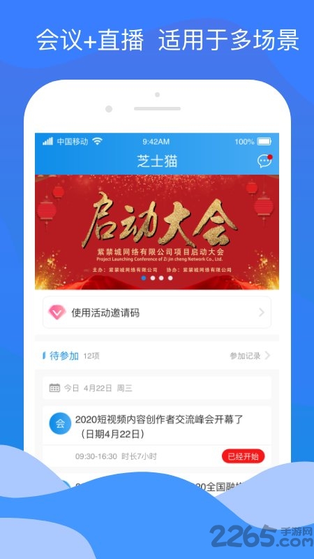 线上会议:平台用户可以通过线上实时互动的网络视频交互进行在线会议。主要功能包括: