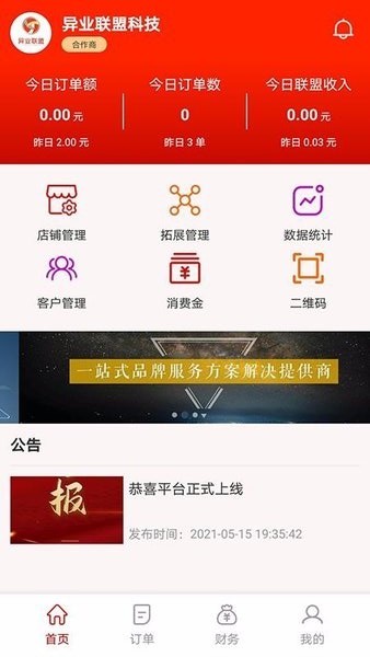 1、自动统计并显示今日订单额、今日订单数、今日联盟收入,也标注了昨日对比;