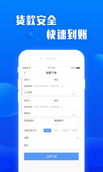 2、自选支付方式,货主可以体验预付、现付以及贷款扣、回单付等付款方式;