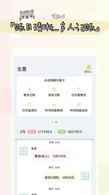 - 生意账本:记录你的财富积累之路,共享账本给收银员,支持权限管理