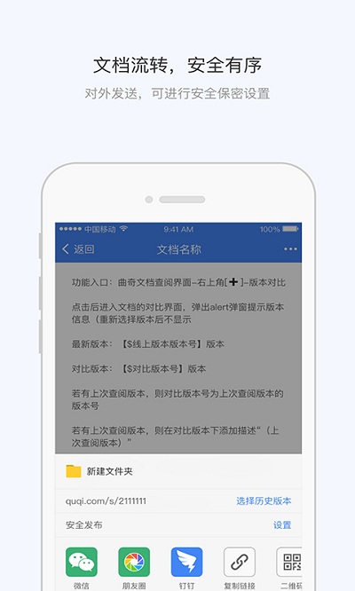 曲奇办公,一款以文档为载体的“轻量级”企业办公管理应用。权限从老板开始,自上而下逐级授权,确保内部文档流转安全,企业与合作伙伴文件往来,通过建立共享云端文件夹,开展文档收集、发布、编辑等工作,真正实现文档有序管理。