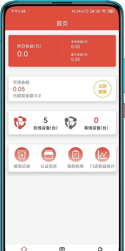 查看自己的收益情况,在线提到支付宝微信,更好管理设备