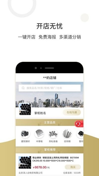 4、以钢贸经理人为核心的营销服务,帮助用户无忧开店,0成本,零库存,开启钢贸新零售;