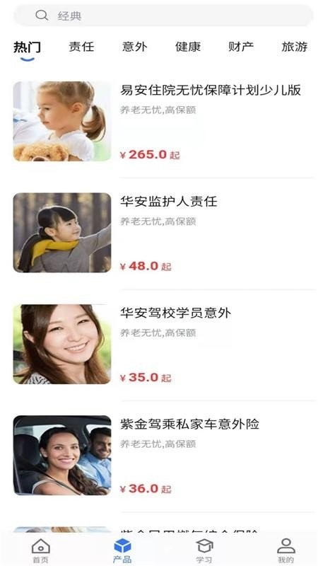 保险产品分类展示,方便用户在这里查找保险产品,学习产品知识