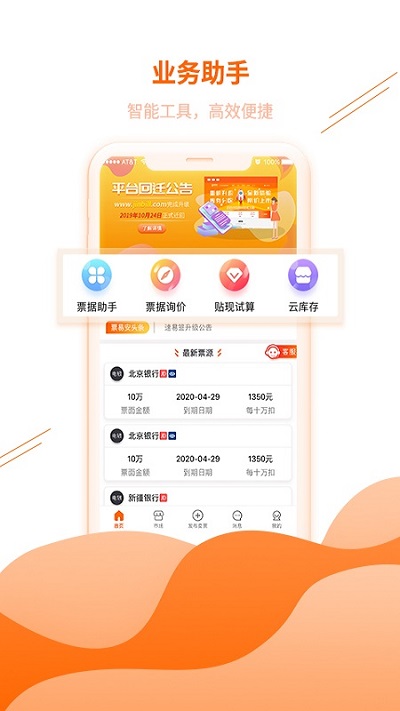 2.票据助手:有问题票查询、行号查询、贴现计算器、贴现日历等.