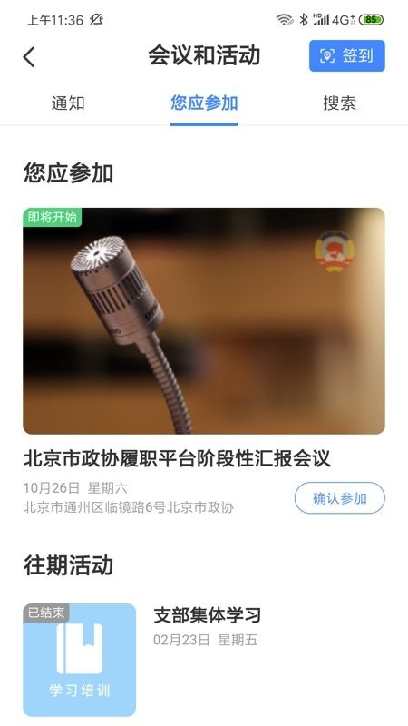 --会议通知推送与签到:保证所发会议快速推送至委员APP,并可以进行反馈与签到;