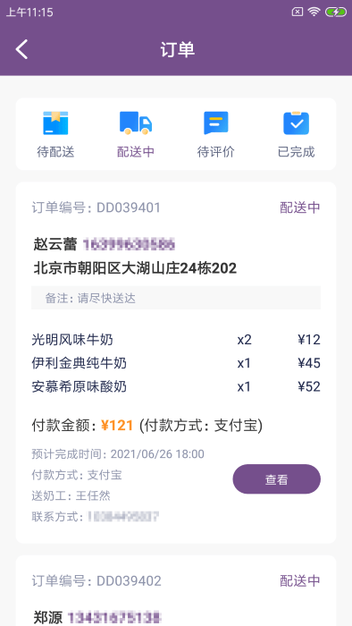 2、奶站订单量、品种、送奶员、收益一目了然。