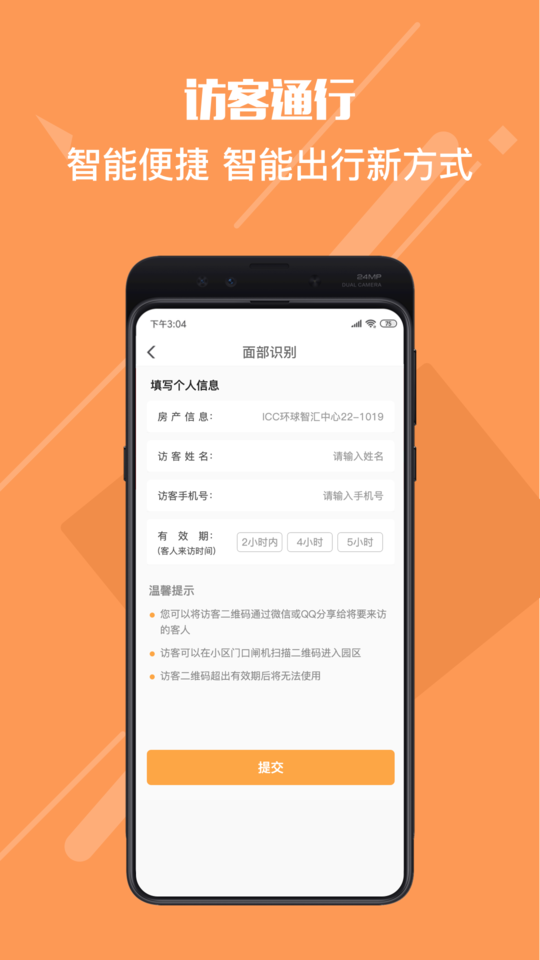3、访客通行:为访客生成来访二维码,访客使用二维码进行写字楼内通行.