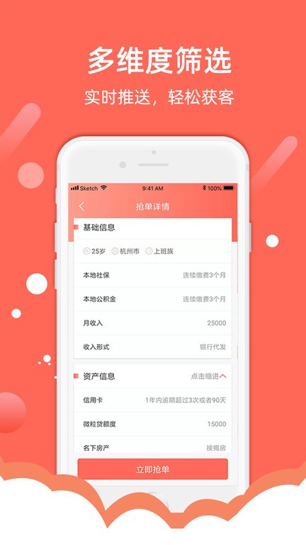 开单超人平台是一款专为信贷从业人员而打造的手机获客软件,帮助用户获取海量真实的客源,提供客户的真实身份信息以及联系方式和社会保障信息,让你能够更加精准的指定目标,轻松获取大量优质客源.