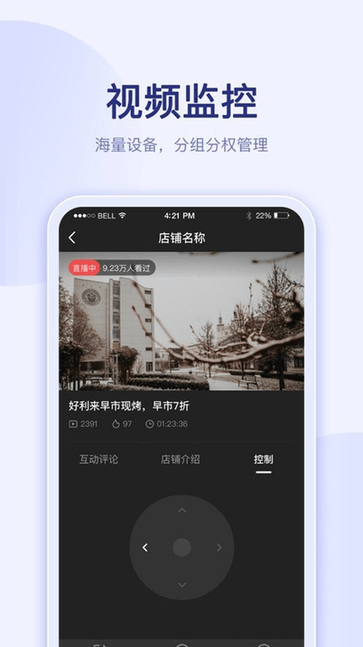 2.用户通过千里眼云掌柜APP可以随时随地查看店铺状态,守护安全。
