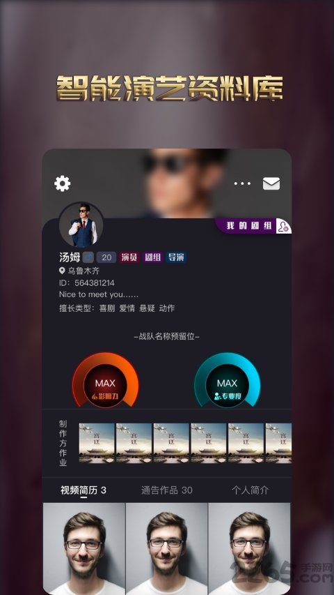 我们提供用户快速建设自己的在线资料库功能,不仅仅提供专业的演艺资料存储方式,还提供个人生活工作短视频秀的广场模式,并提供直接的网络聚粉和社交功能,让制作方能够更快速更全面的了解这些新人的专业能力和社会影响力。